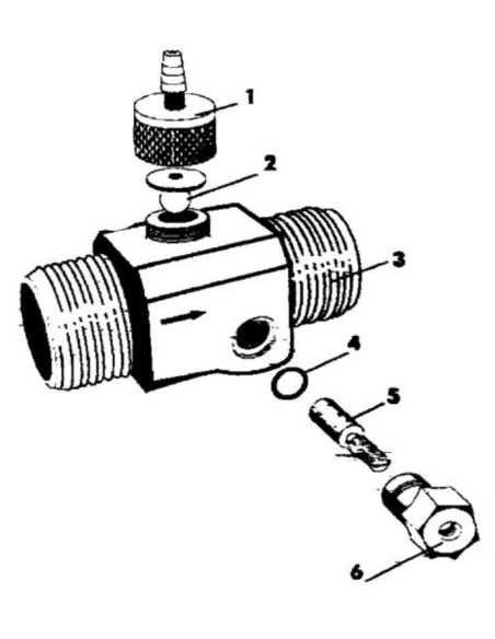 Über die seitlich angebrachte Stellschraube (Nr. 5 in der Explosionszeichnung) in der lässt sich die Luftmenge regulieren.